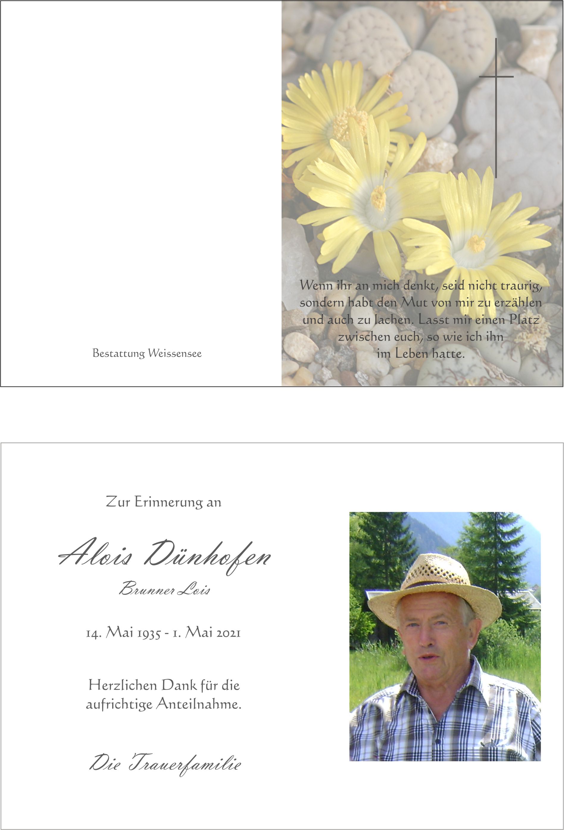 Bestattung wurde durchgeführt von: Markus Ertl Bestattung Weissensee Neusach 26 9762 - Weißensee Tel.: 04713 22 29 zum Bestatter