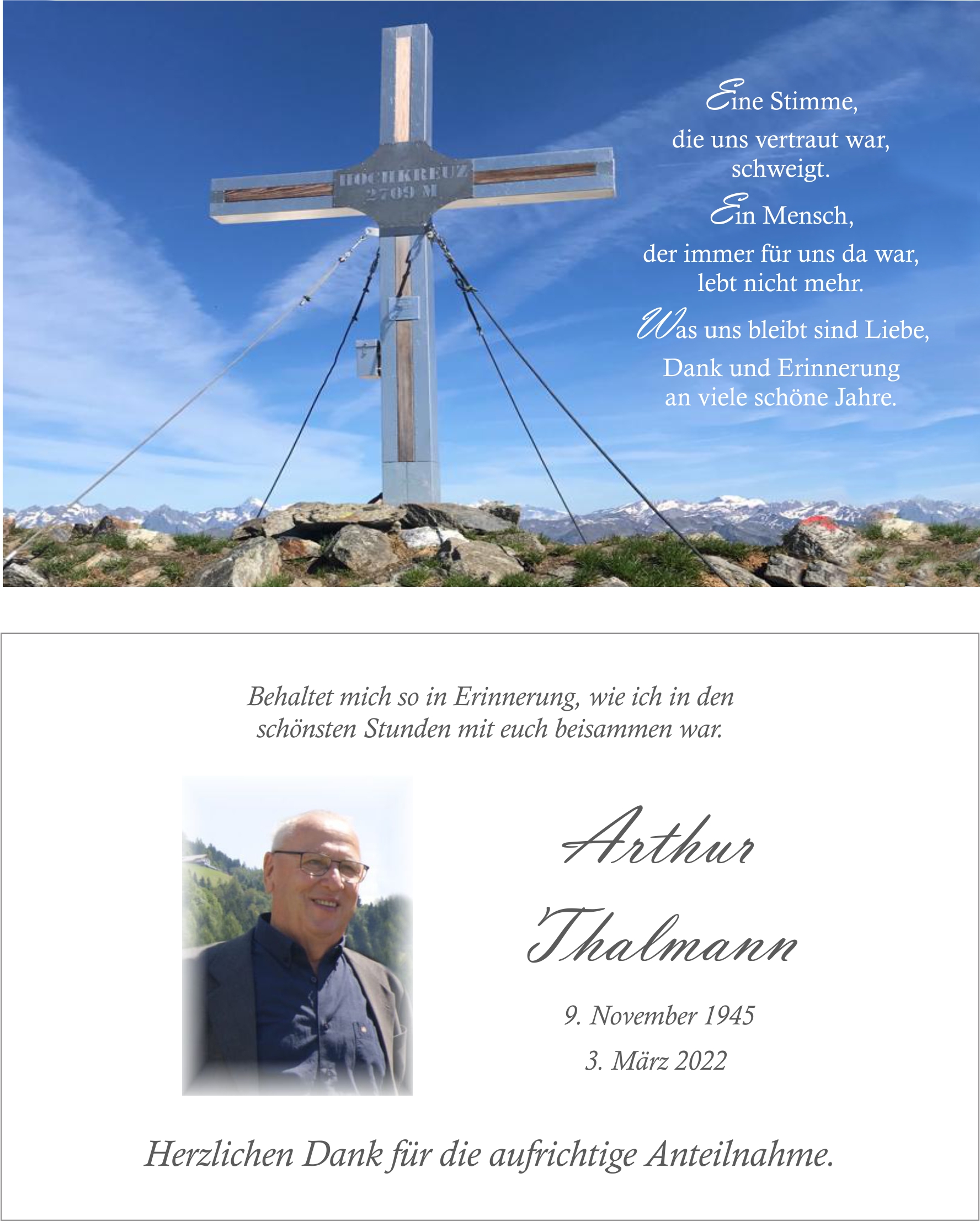 Neue Kerze für Arthur Thalmann entzünden.