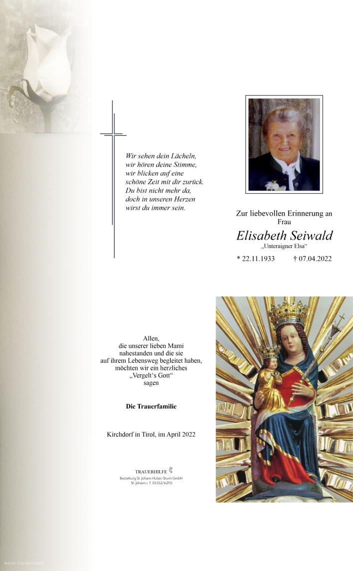 Neue Kerze für Elisabeth Seiwald entzünden.