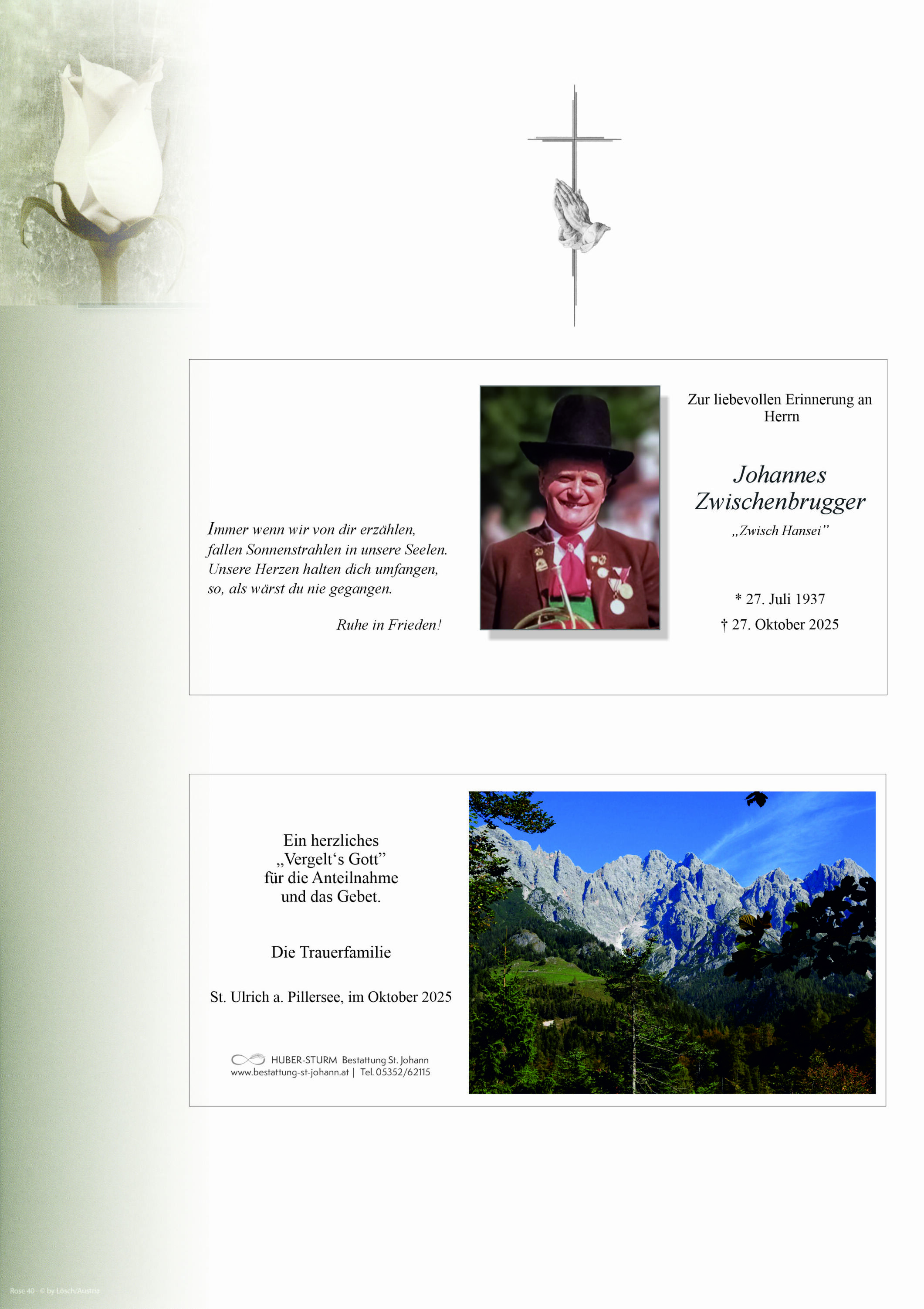 Neue Kerze für Johannes Zwischenbrugger entzünden.