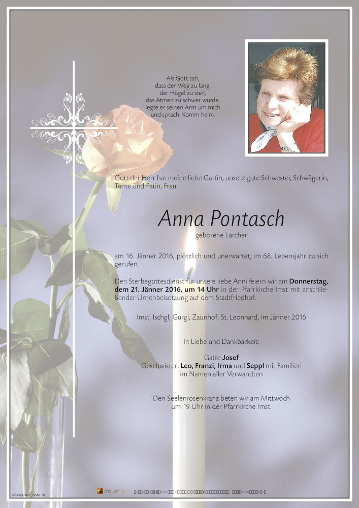 Neue Kerze für Anna Pontasch entzünden.