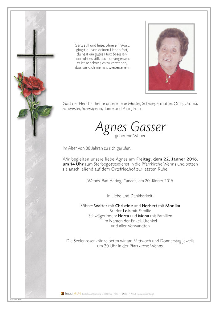 Friedhof Wenns, † 20.01.2016 (88 Jahre)