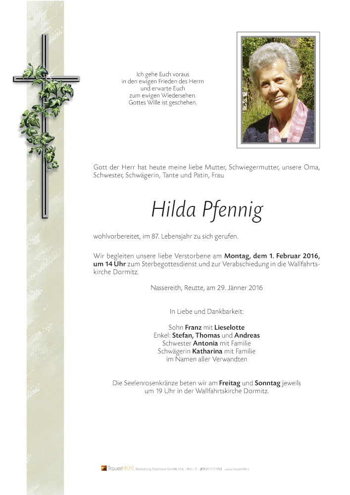 Aufrichtige Anteilnahme zum Tode von Hilde es war Erlösung