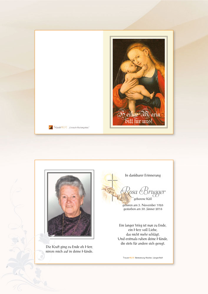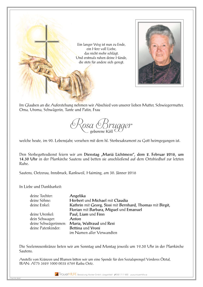Die Mutter wars, was braucht es Worte mehr, ihr habt in den letzten Jahren so viel geleistet um eurer Mama einen schönen Lebensabend zu ermöglichen, jetzt geht sie auf der anderen Seite des Weges, wir wünschen euch viel Kraft und Zuversicht in der schweren Zeit des Abschiednehmens