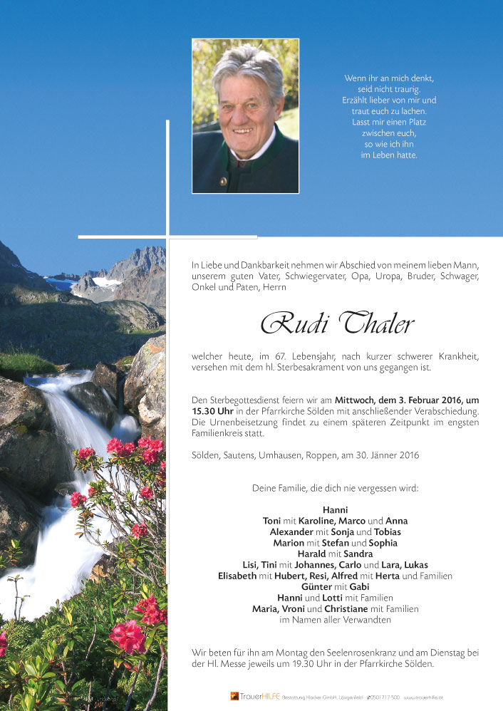 Unser aufrichtiges Beileid05.02.2016 10:39 - Familie Walter Riml