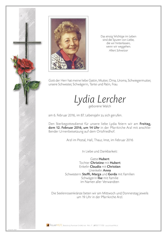 Du bist und bleibst für immer in den Herzen deiner Lieben, Lydia.