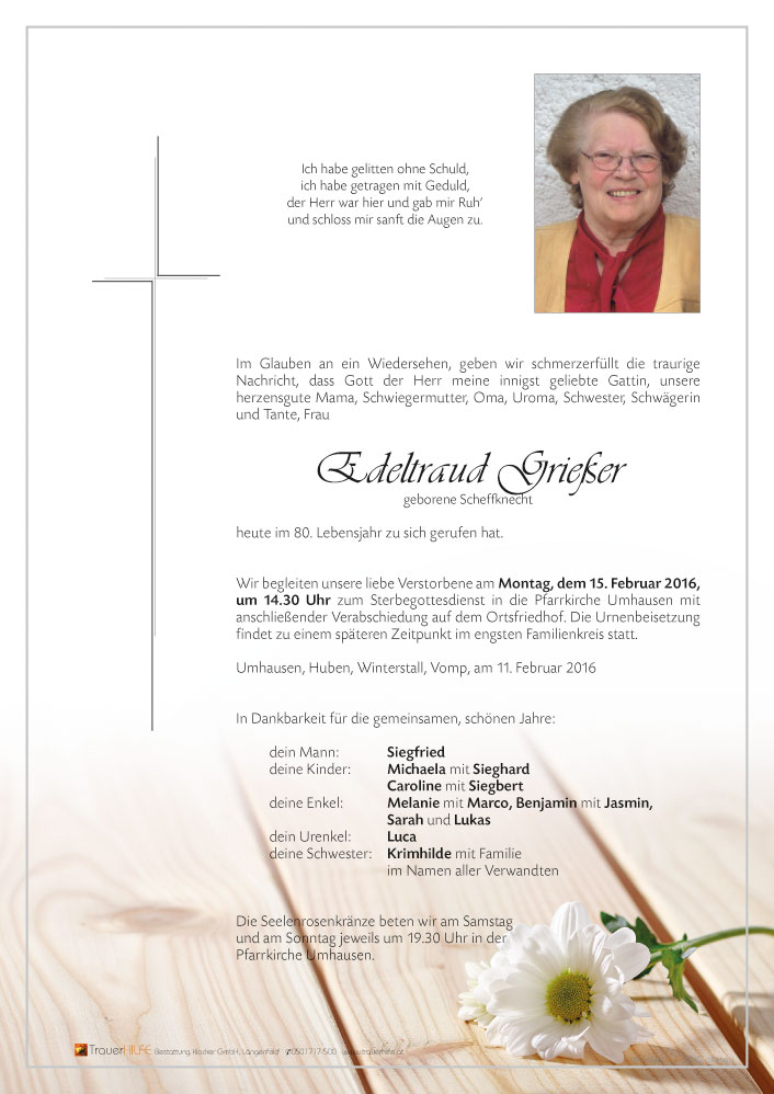 Wir danken Gott, dass du unser warst!16.02.2016 22:32 - Familie Grießer, Gritsch, Kuen