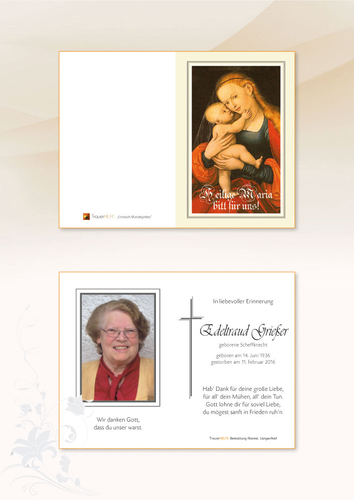 Dein Leben war ein großes Sorgen,war Arbeit,Liebe und Verstehen,war wie ein heller Sommermorgen- und dann ein stilles Von-uns-Gehn. In stillem Gedenken und aufrichtige Anteilnahme Gabriele Keimel