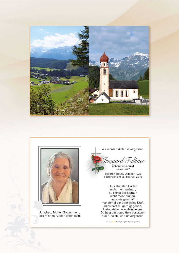 Vater, du hast meine Frau Irma, unsere Mutter, zu dir genommen.