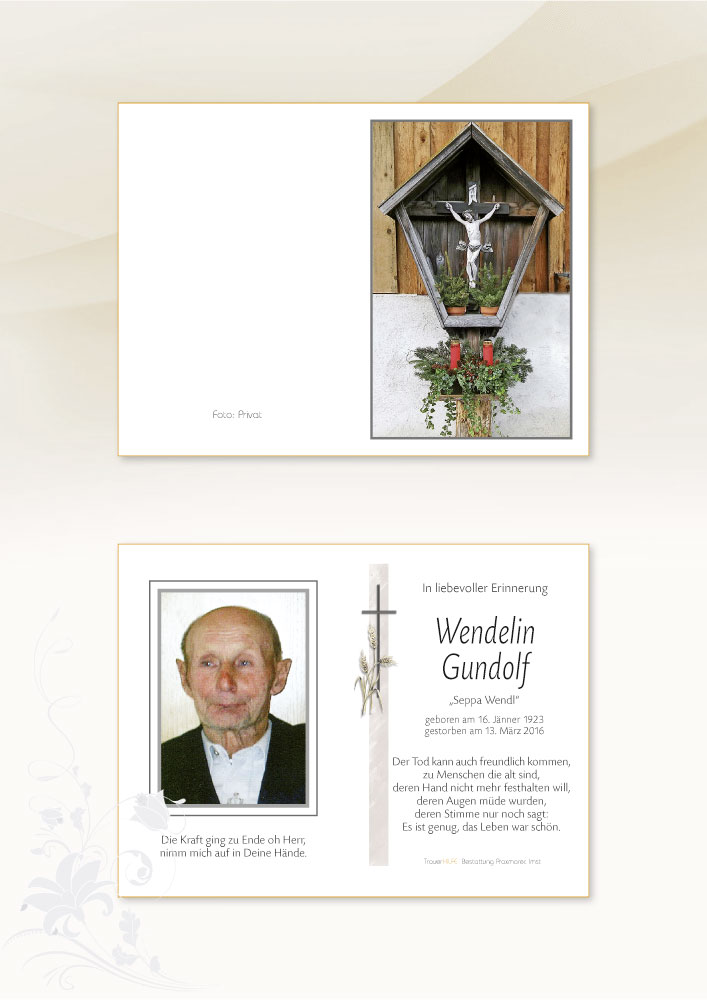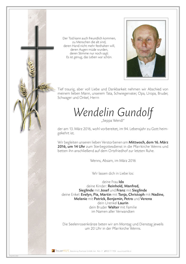 Liebe Familie Gundolf, wir möchten unser aufrichtiges Beileid anlässlich des Heimganges von Wendl bekunden.