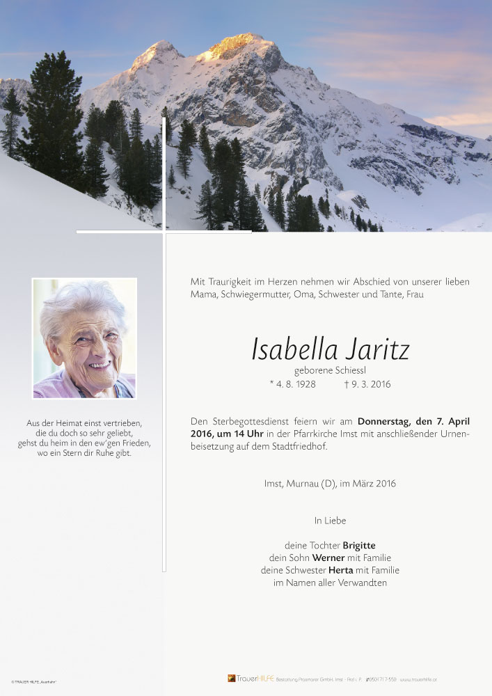 Friedhof Imst, † 09.03.2016 (87 Jahre)