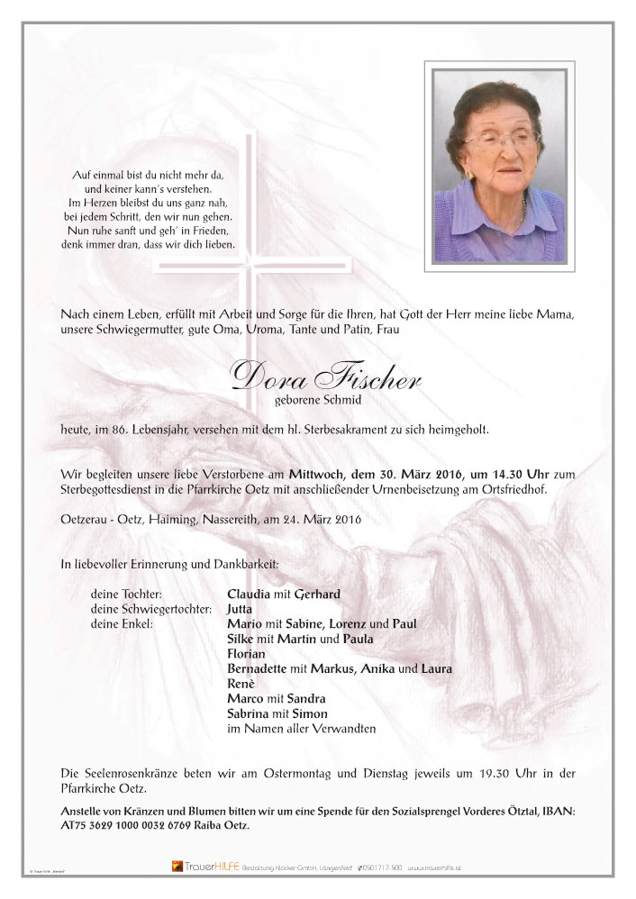 (Jes. 43). Unser inniges Beileid entbietet Euch Willi und Silvia25.03.2016 16:58 - Silvia und Willi Auer