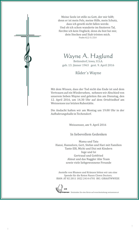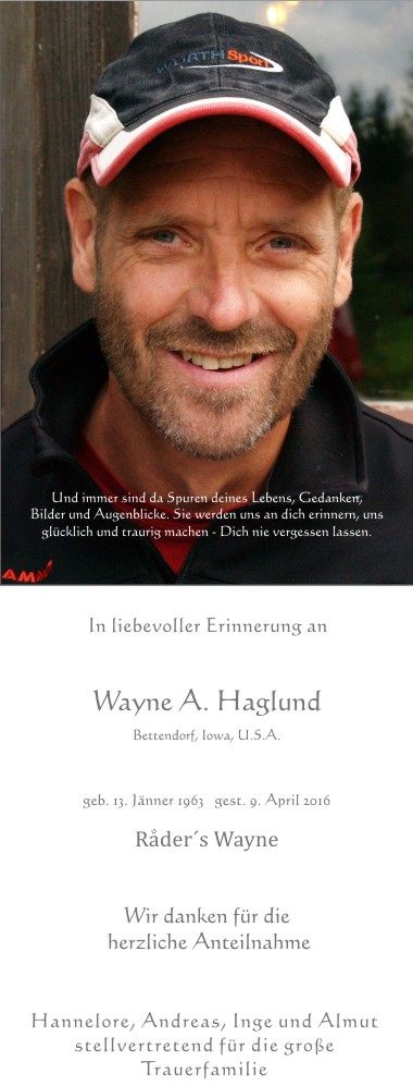 Lieber Wayne, du hast viele Spuren von Liebe hinterlassen. Danke dafür!11.04.2016 13:36 - Sigi Stipsits