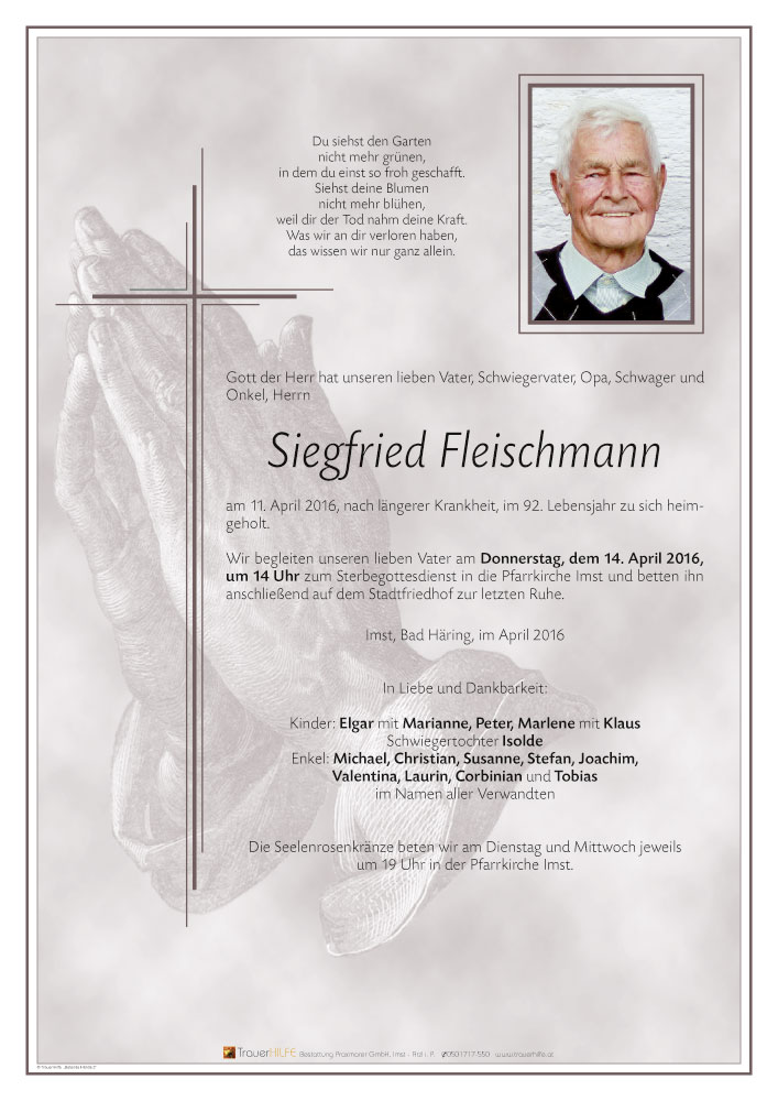 Am Heimgang Eures lieben Vaters, Schwiegervaters, Opas, Schwagers und Onkels möchten wir Euch allen unser aufrichtiges Beileid aussprechen!