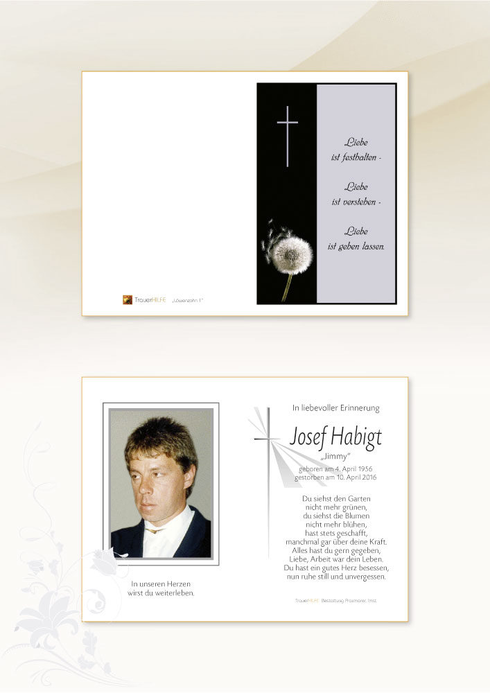 Was du uns im Leben hast gegeben, dafür ist jeder Dank zu klein. Du hast gesorgt für deine Lieben, von früh bis spät, tagaus, tagein.