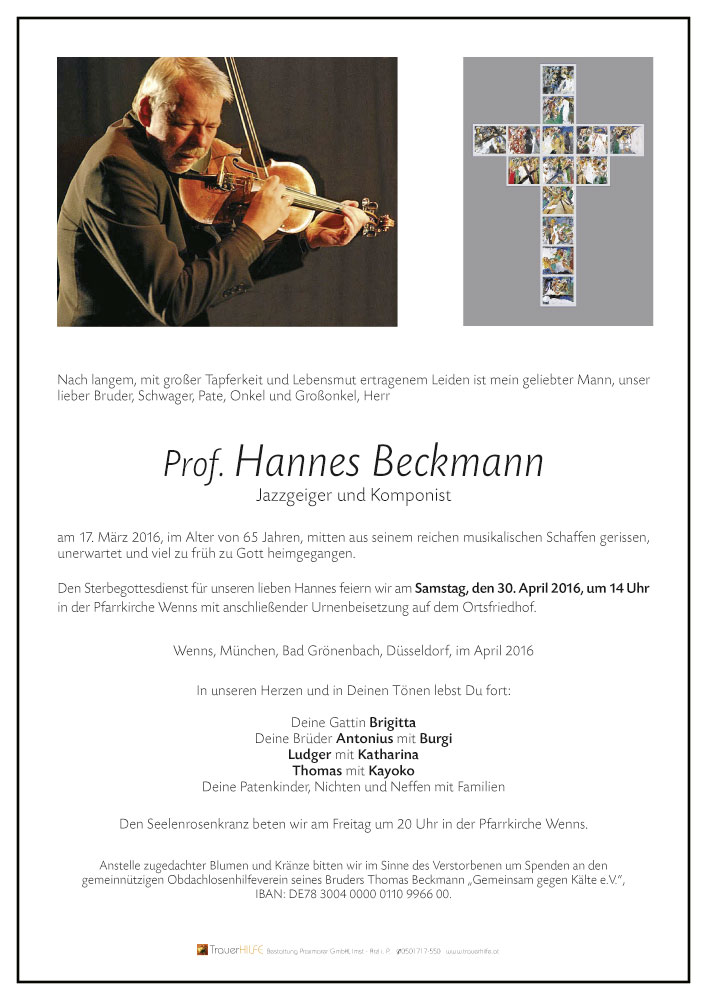 Neue Kerze für Hannes Beckmann entzünden.
