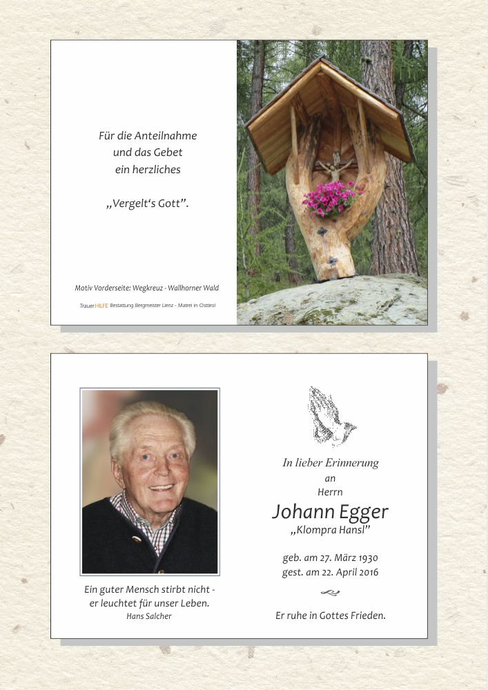 Liebe Trauerfamilien Egger Euer Vater hat uns bei derGründung des Osttiroler Bäuerinnenchors so selbstverständlich mehrere Jahre als Chorleiter geholfen.