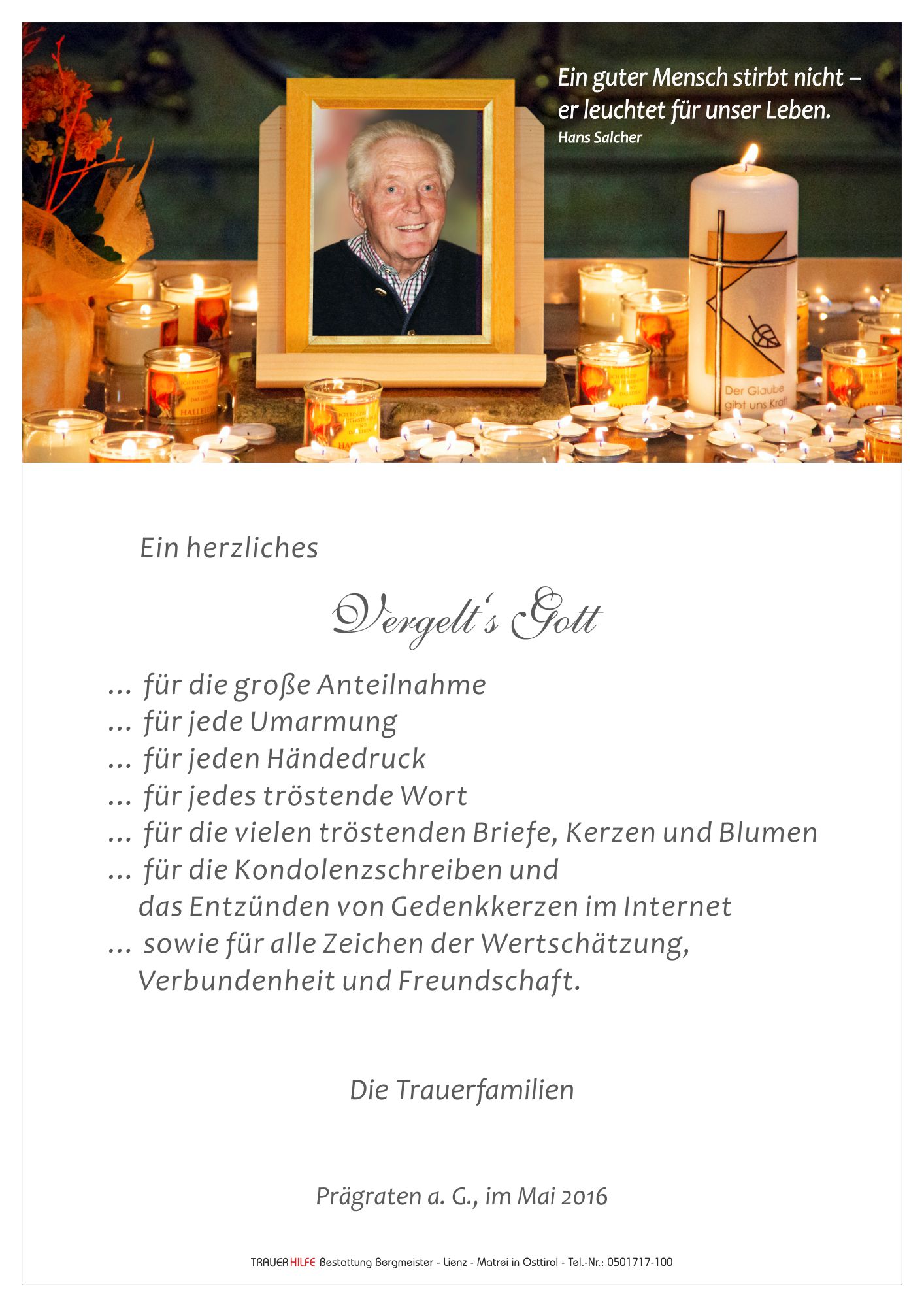 Aufrichtiges Beileid und viel Kraft in diesen schweren Stunden entbieten Mario, Petra, Luca und Anna Unterwurzacher25.04.2016 11:25 - Fam. Mario Unterwurzacher