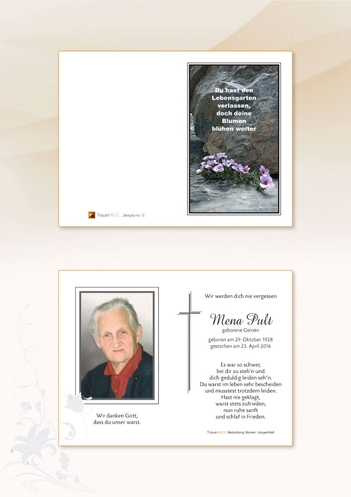 Du hast gesorgt, du hast geschafft, gar manchesmal über deine Kraft. Dich leiden sehen und nicht helfen können, war unser größter Schmerz. So ruhe nun wohl, liebes Mutterherz.