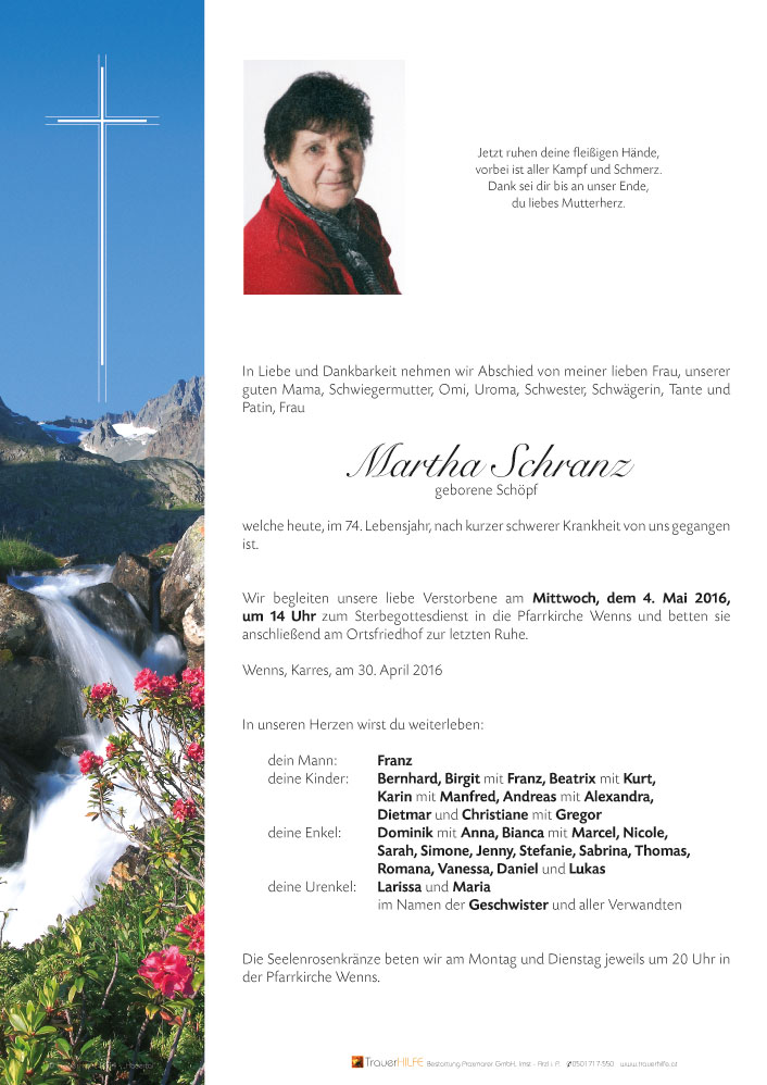 Wir hoffen, dass du uns weiterhin als Schutzengel begleiten wirst. Wir werden dich immer ins unserem Herzen bewahren.02.05.2016 13:16 - Deine Enkel Sarah, Stefanie und Romana