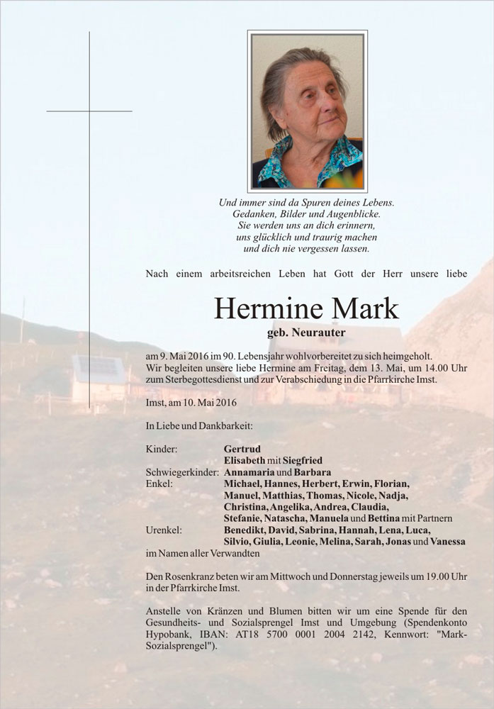 Aufrichtige Anteilnahme und Trost in den schweren Zeit, entbieten die Mitarbeiterinnen des Sozial- u. Gesundheitssprengel Imst & Umgebung11.05.2016 08:32 - Sozial- und Gesundheitssprengel Imst