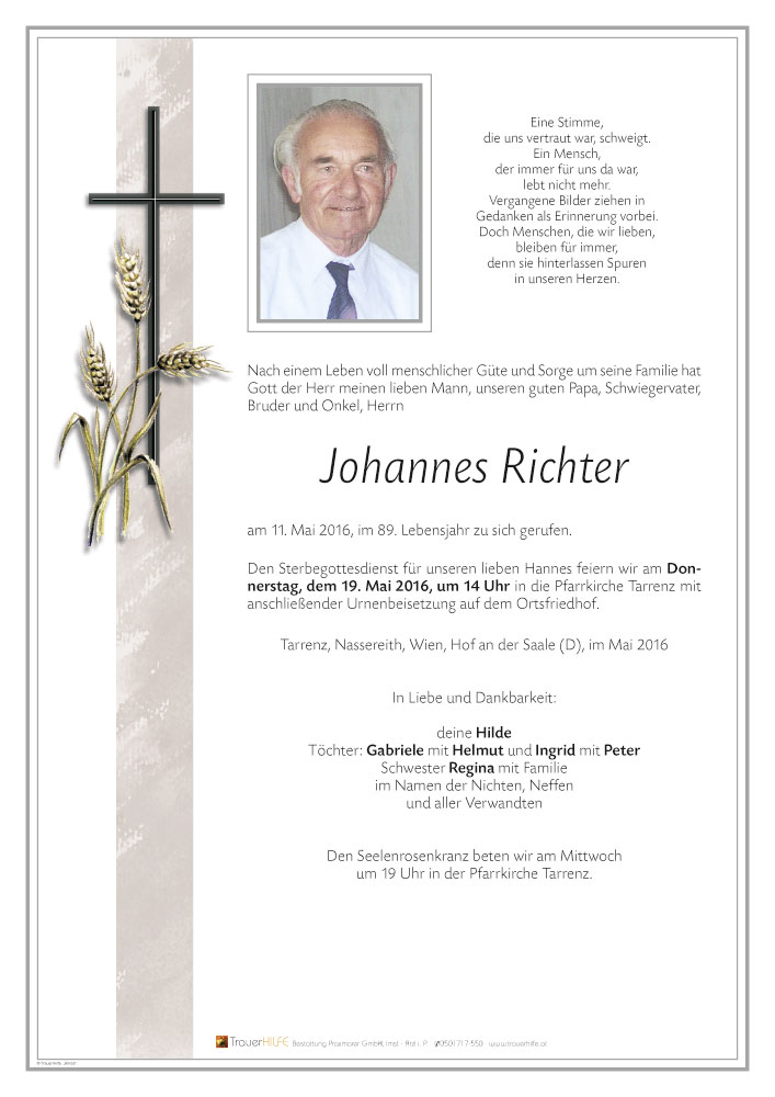 Aufrichtige Anteilnahme.17.05.2016 18:55 - Huber Edeltraud