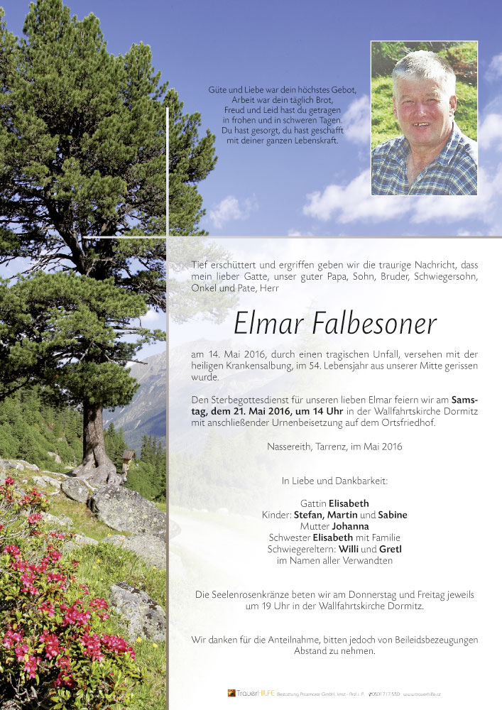 Unser aufrichtiges Beileid zum plötzlichen Ableben von Eurem Elmar.19.05.2016 14:32 - Fam. Bernhard Schönherr