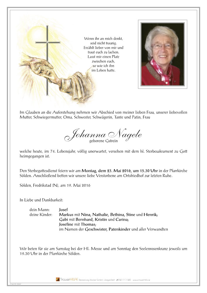 Wir wünschen euch von ganzem Herzen viel Kraft in dieser schweren Zeit, Gottes Segen..... mögen die lieben und schönen Erinnerungen an eure Mama stets mit euch sein. Unser aufrichtiges Beileid.21.05.2016 10:40 - Petra,Davide, Daniele, Hilda und Traudi