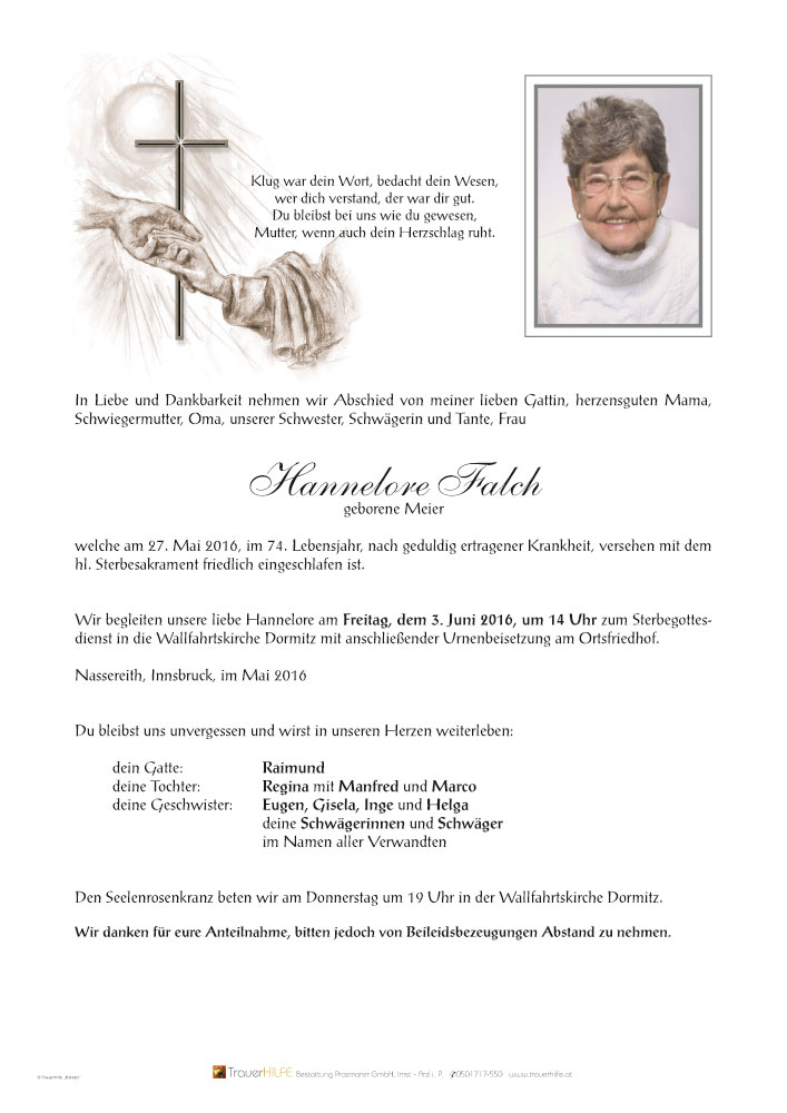 Zum Ableben deiner lieben Hannelore entbieten wir Dir unser aufrichtiges Beileid.31.05.2016 18:22 - Simone & Bernhard Schönherr