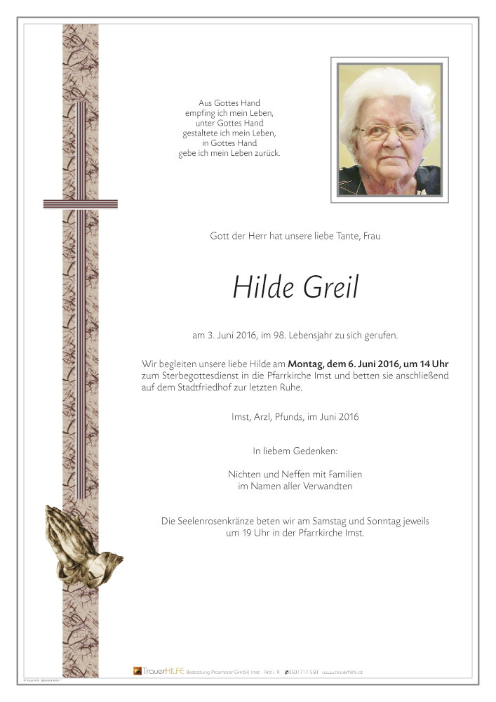 Am Heimgang Eurer lieben Tante Hilde möchten wir Euch allen unser aufrichtiges Beileid aussprechen! Möge Euch der Herrgott viel Kraft schenken in dieser schweren Zeit! Wir werden Hilde stets in lieber Erinnerung behalten!
