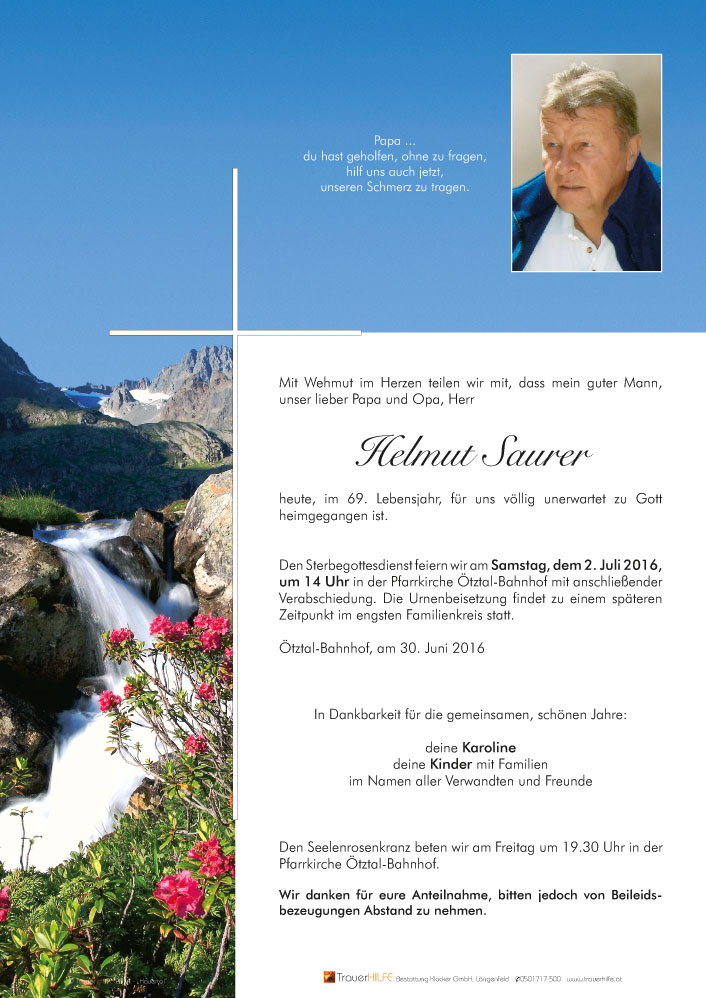 Liebe Karoline und Familien, wir haben heute die unfassbare Nachricht vom plötzlichen Tod von Helmut erfahren. Wir sind sehr traurig und in Gedanken bei euch. Wir wissen was ihr verloren habt. Aufrichtige Anteilnahme Franz und Andrea