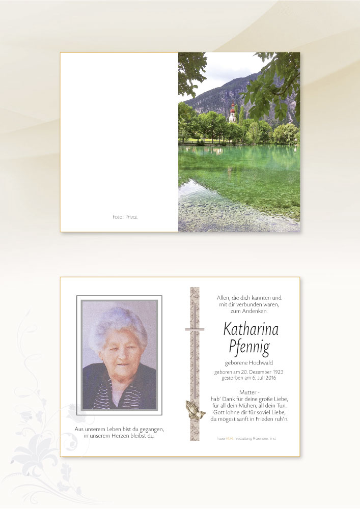Bestattung wurde durchgeführt von: Daniel Klocker Bestattung Praxmarer GmbH Thomas Walch Str. 4 6460 - Imst Tel.: 05412 64250 zum Bestatter