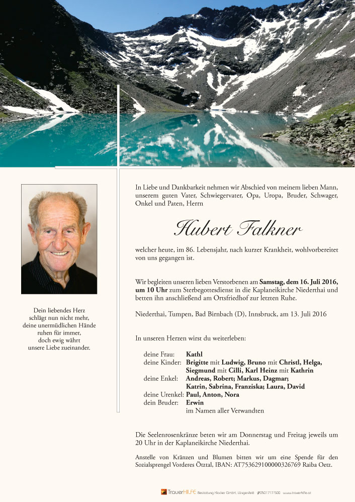 Eine aufrichtige Anteilnahme zum Heimgang von Hubert.14.07.2016 20:38 - Praxmarer Hermann/Rosi