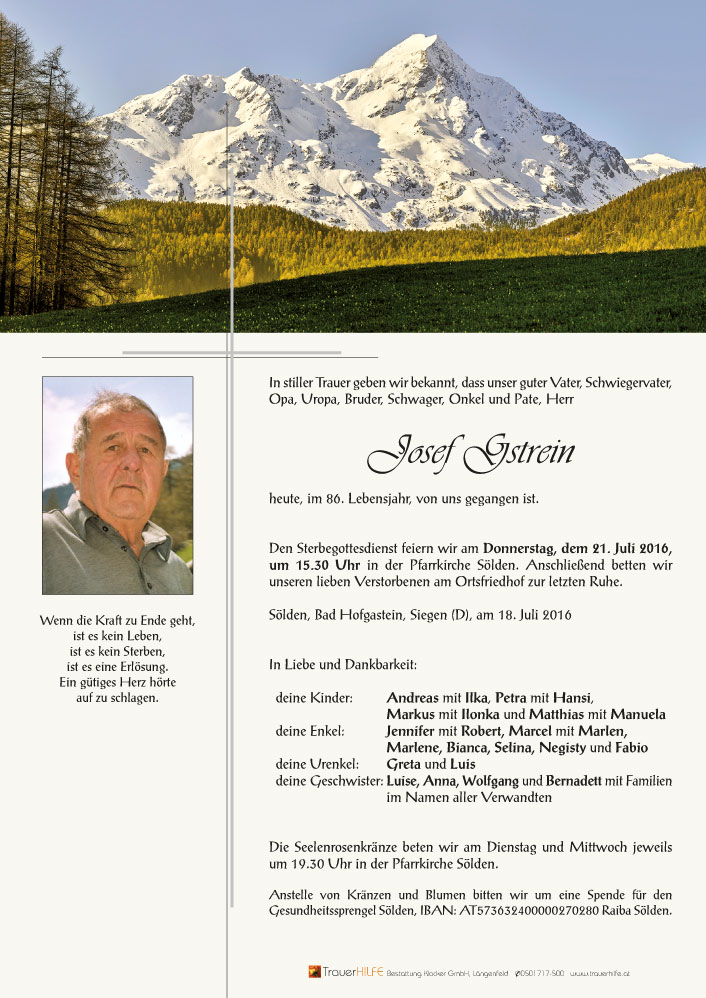 Friedhof Sölden, † 18.07.2016 (85 Jahre)