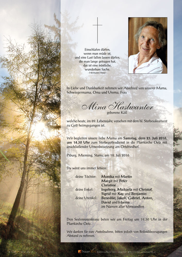 Friedhof Oetz, † 18.07.2016 (88 Jahre)