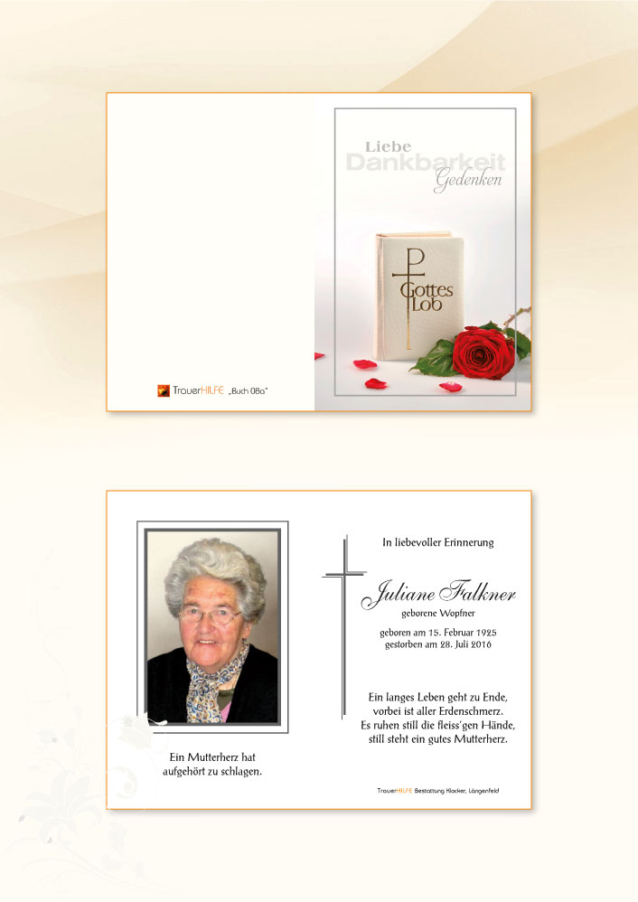 Ihr ward immer für sie da und habt sie durch alle Höhen und Tiefen ihres Lebens getragen. Habt sie vorbildlich begleitet bis zum Schluss.