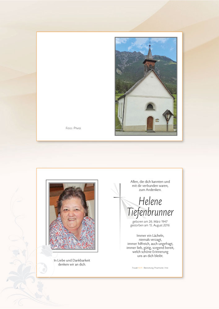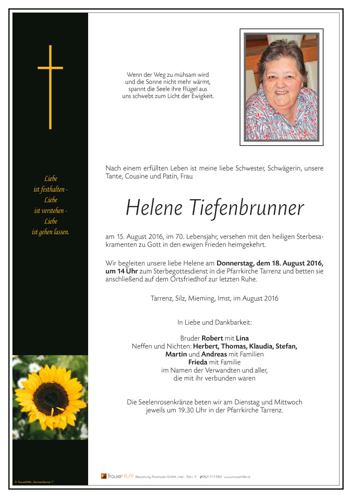 Liebe Helene, ich werde dich immer in meine Gebete einschließen damit unser Herrgott dich in seine Arme schließt.
