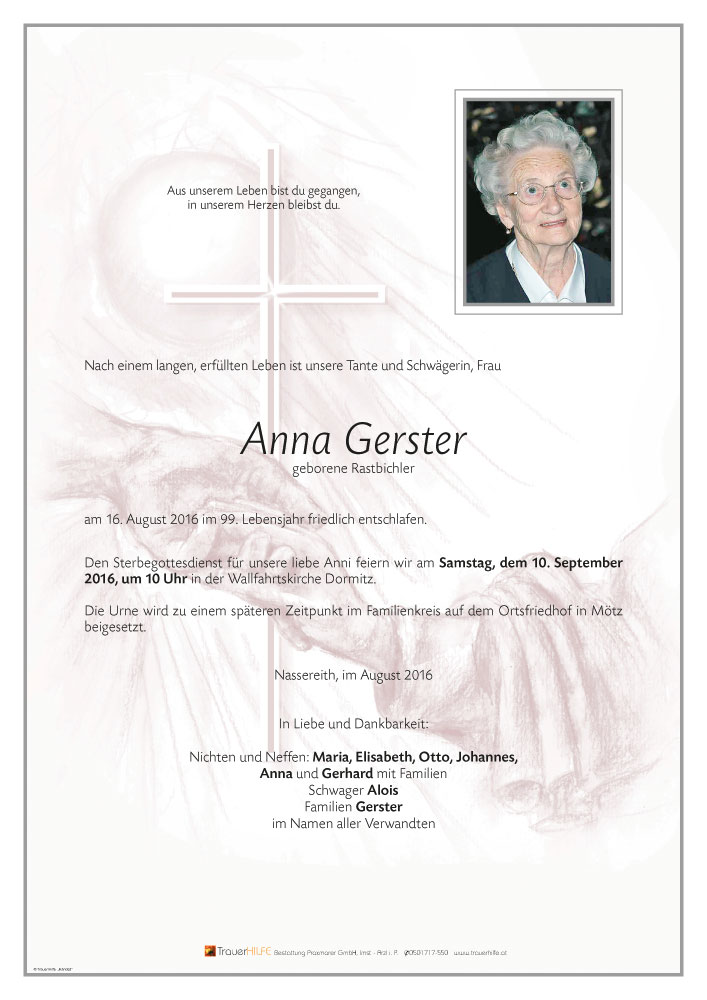 Friedhof Dormitz - Nassereith, † 16.08.2016 (98 Jahre)