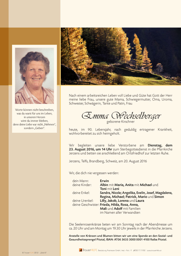 Unsere aufrichtige Anteilnahme entbieten Renate und Thomas mit Kinder und Maria Reinstadler