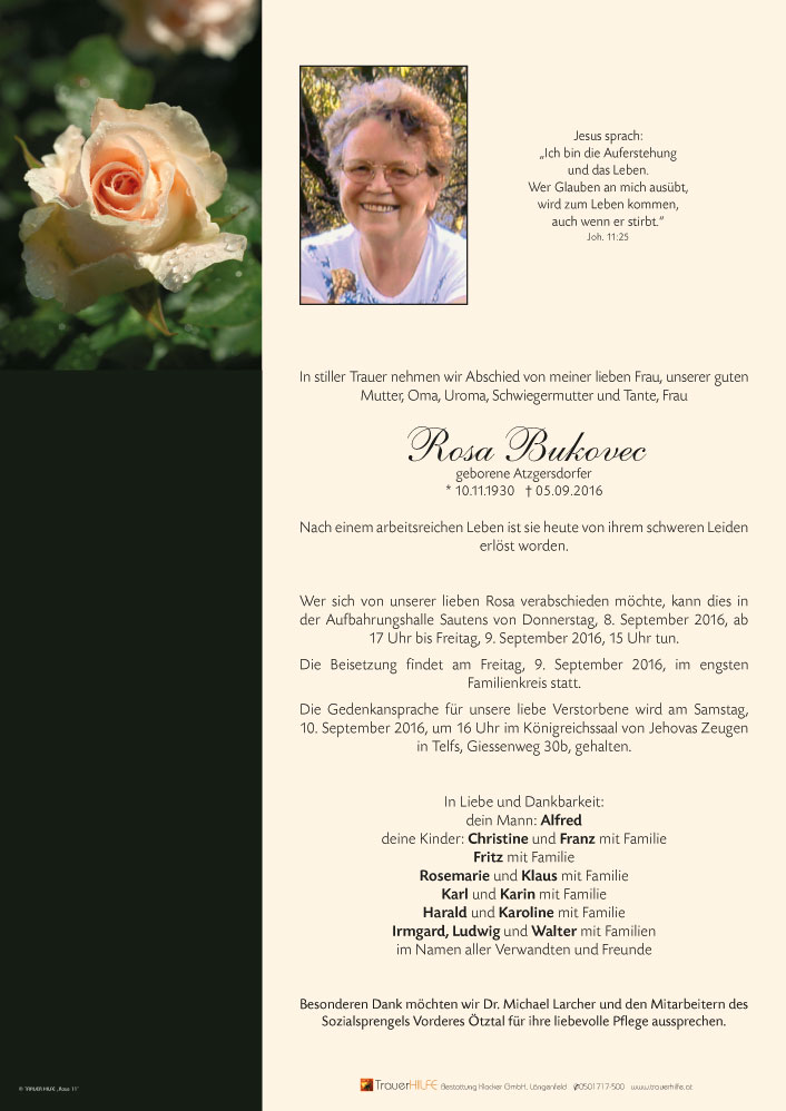 Bestattung wurde durchgeführt von: Daniel Klocker Bestattung Klocker GmbH Oberlängenfeld 41 6444 - Längenfeld Tel.: 05253 5561 zum Bestatter