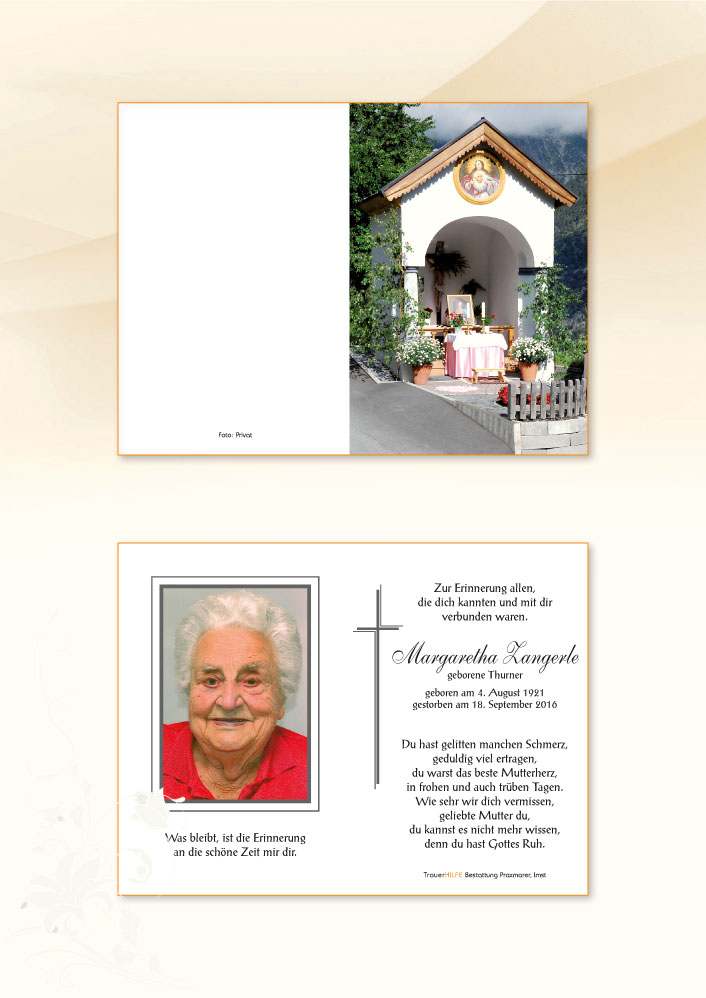 Bestattung wurde durchgeführt von: Daniel Klocker Bestattung Praxmarer GmbH Thomas Walch Str. 4 6460 - Imst Tel.: 05412 64250 zum Bestatter