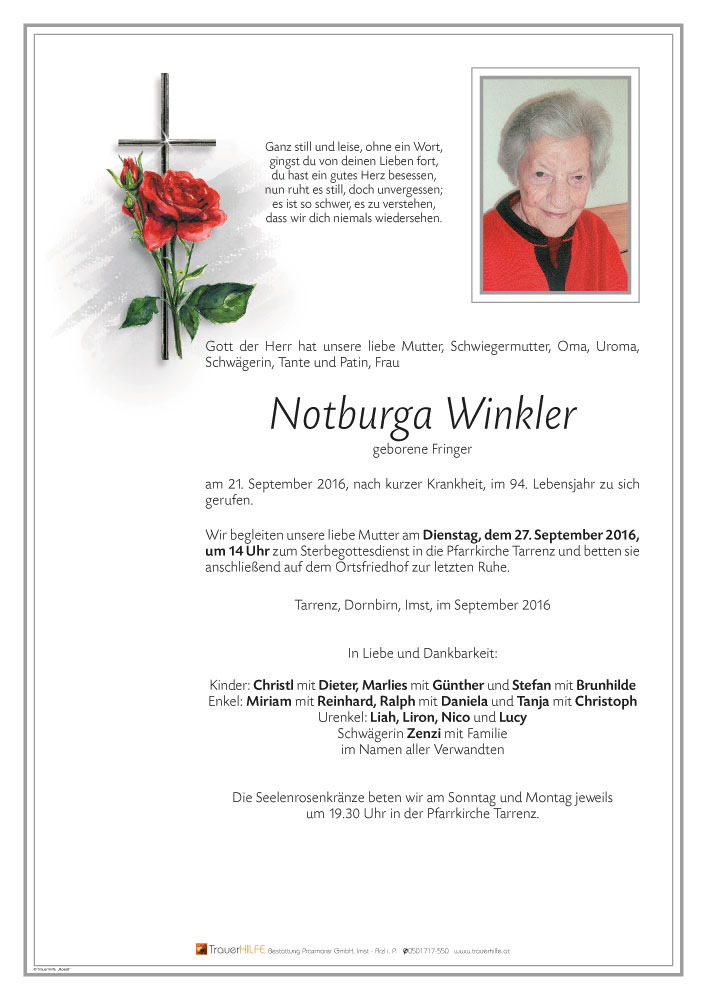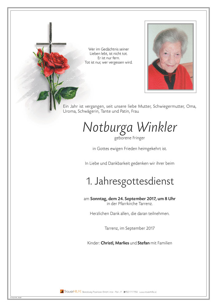 Neue Kerze für Notburga Winkler entzünden.