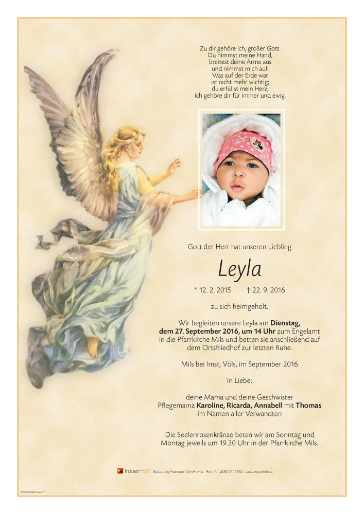 Ganz viel Liebe, Wärme und Geborgenheit konnte die kleine Leyla bei euch erfahren.