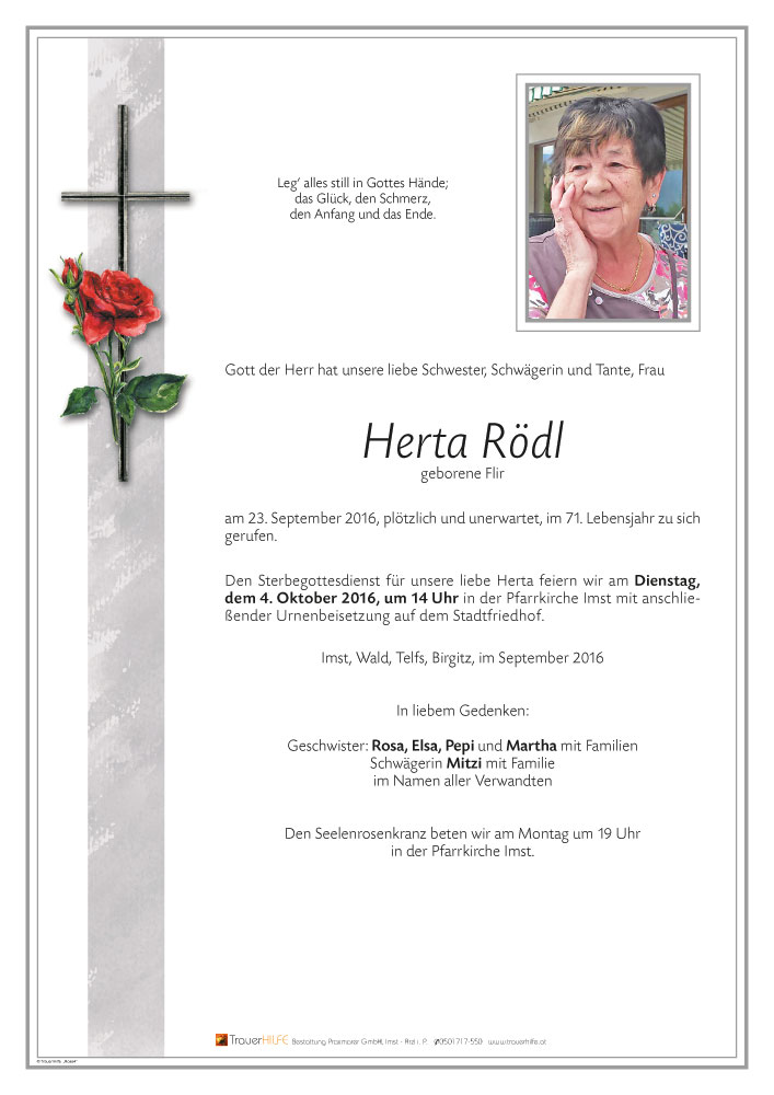 Friedhof Imst, † 23.09.2016 (70 Jahre)