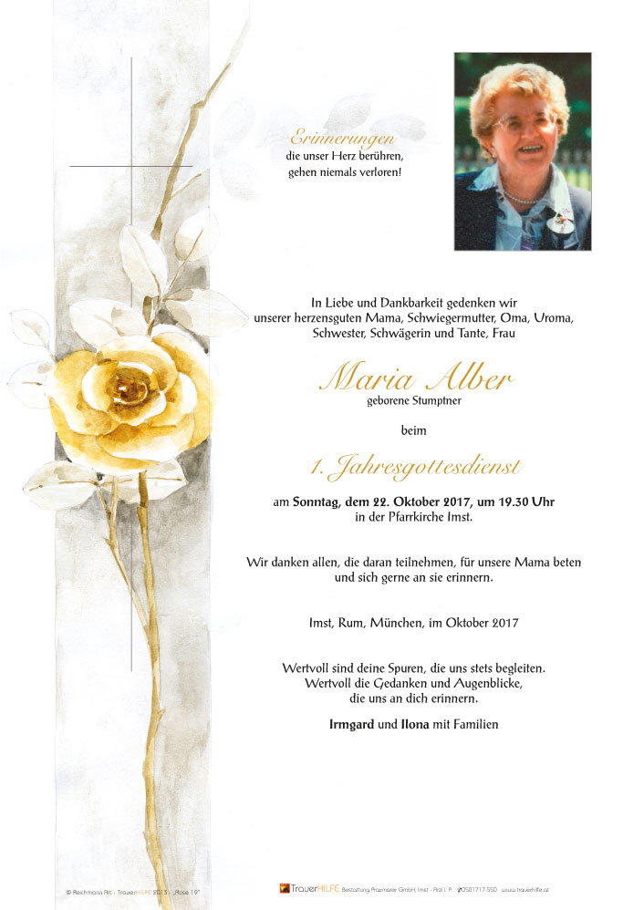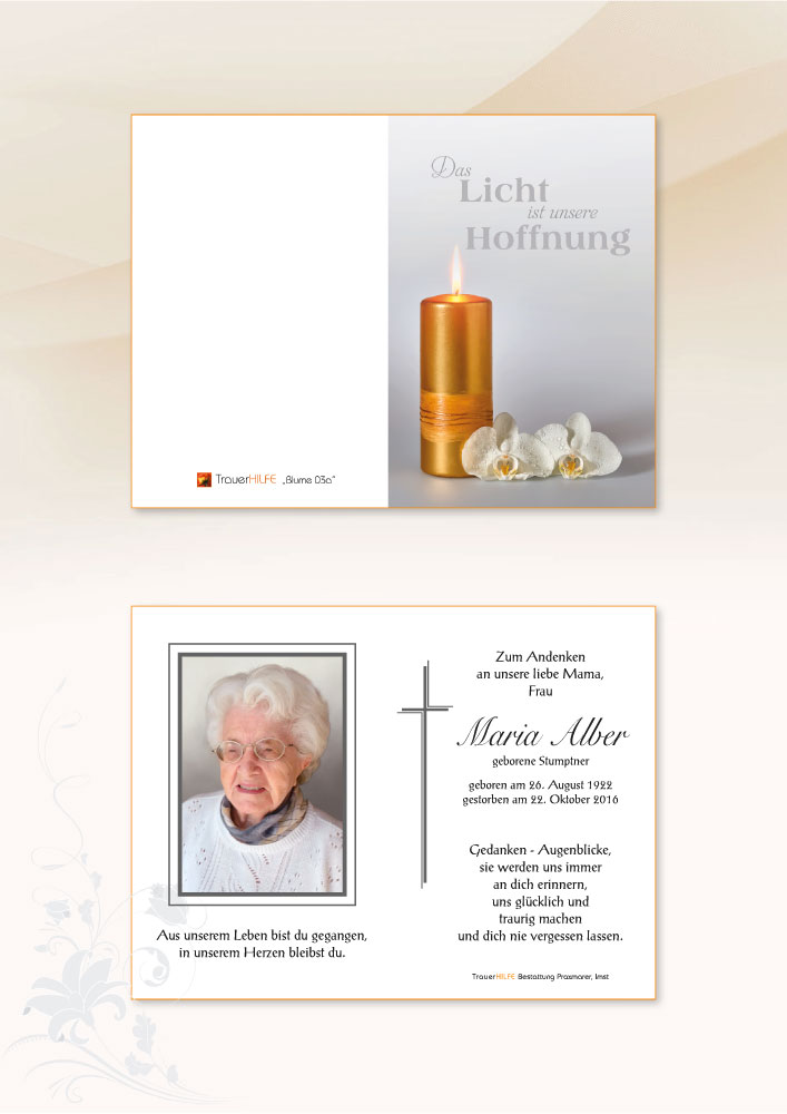 Bestattung wurde durchgeführt von: Daniel Klocker Bestattung Praxmarer GmbH Thomas Walch Str. 4 6460 - Imst Tel.: 05412 64250 zum Bestatter