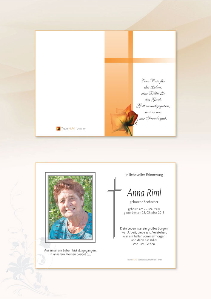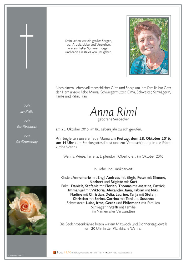 Liebe Annemarie, Engl , liebe Trauerfamilie