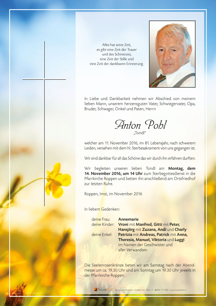 von Herzen aufrichtige Anteilnahme zum Heimgang eures lieben Tondl!