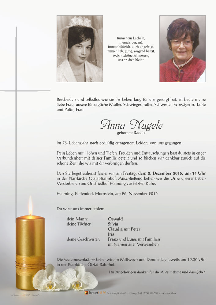 Herzliche Anteilnahme am Tod von Anni. Sie war ein netter, immer freundlicher und herzlicher Mensch und so werden wir sie in Erinnerung behalten.