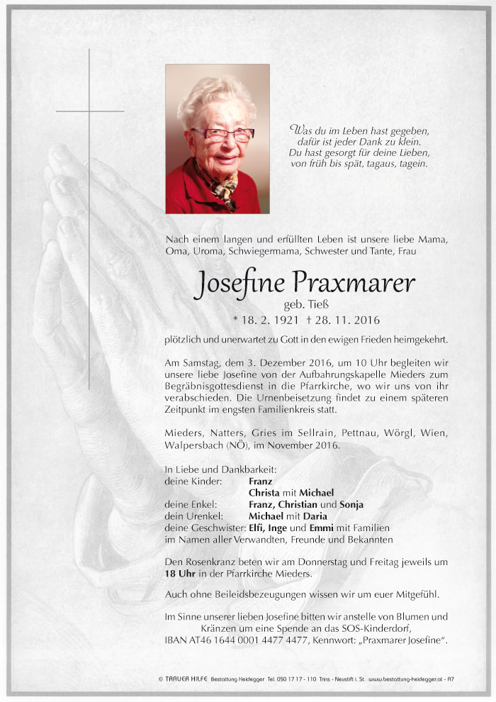 Friedhof Mieders, † 28.11.2016 (95 Jahre)
