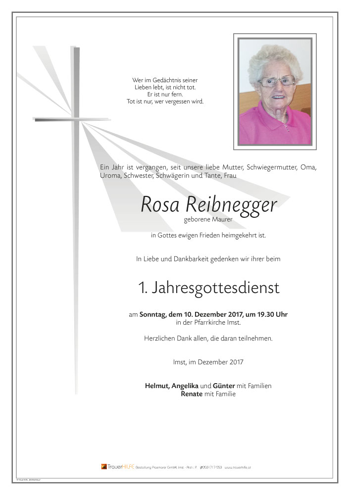 Neue Kerze für Rosa Reibnegger entzünden.